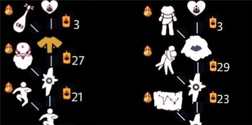 首先要氪一张季卡,然后梦想季先祖【解锁到最上面的节点】就是季节爱心,即:树状图最顶端的兑换物品。如上图所示,每个先祖的兑换树状图顶端,都有一颗爱心,用三根季节蜡烛就能兑换了。