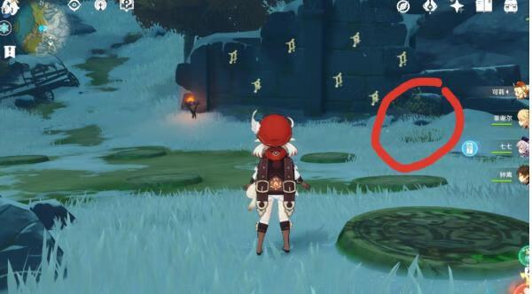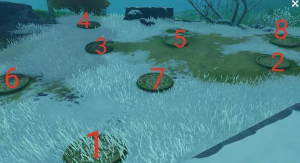 其中红圈处井盖被冰块覆盖,需要用红石头碰一下,按照踩井盖的顺序,墙上陆续出现看不懂的铭文,八个井盖顺序全部踩对,可以获得一个豪华宝箱 具体操作如下