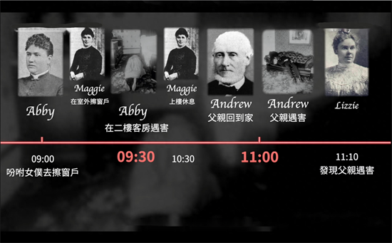 父亲安德鲁则在早上9点15分出门打理生意,直到10点50分才回来,而女仆在外面足足擦了一个半小时窗户,直到10点30分才擦完窗户,然后独自进屋到三楼的阁楼中休息。