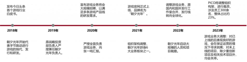 字节先是对虚拟现实业务 PICO 进行了大规模裁员和转岗,其后字节跳动的子公司沐瞳科技也传出了被出售的消息,最近又将对游戏业务 " 朝夕光年 " 进行业务收缩。