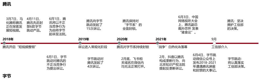 第二天,字节跳动在其官方公众号也 " 碰巧 " 进行了回应,发出一篇 " 字节跳动遭遇腾讯屏蔽和封禁大事记 "。多达 52 页的长文,控诉腾讯实行垄断竞争,并细数了 2018 年至 2021 年字节跳动旗下产品被腾讯封杀的经历。