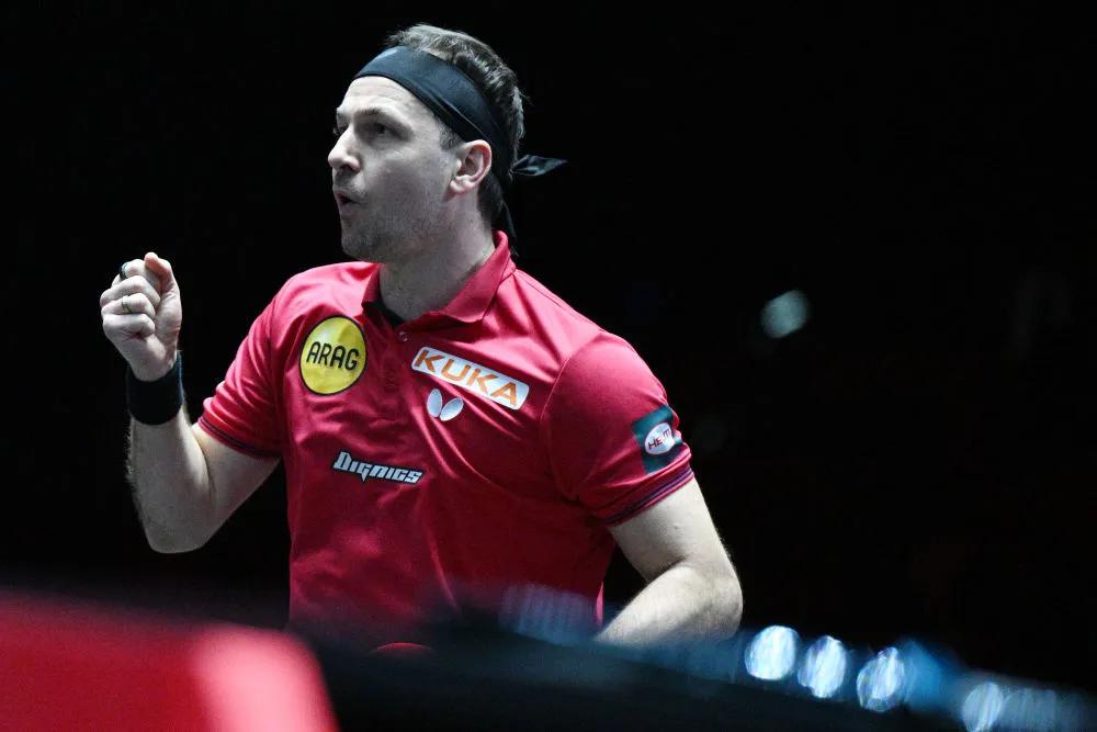3 月 14 日,德国老将波尔在 WTT 新加坡大满贯男子单打八分之一决赛中。新华社发(邓智炜摄)
