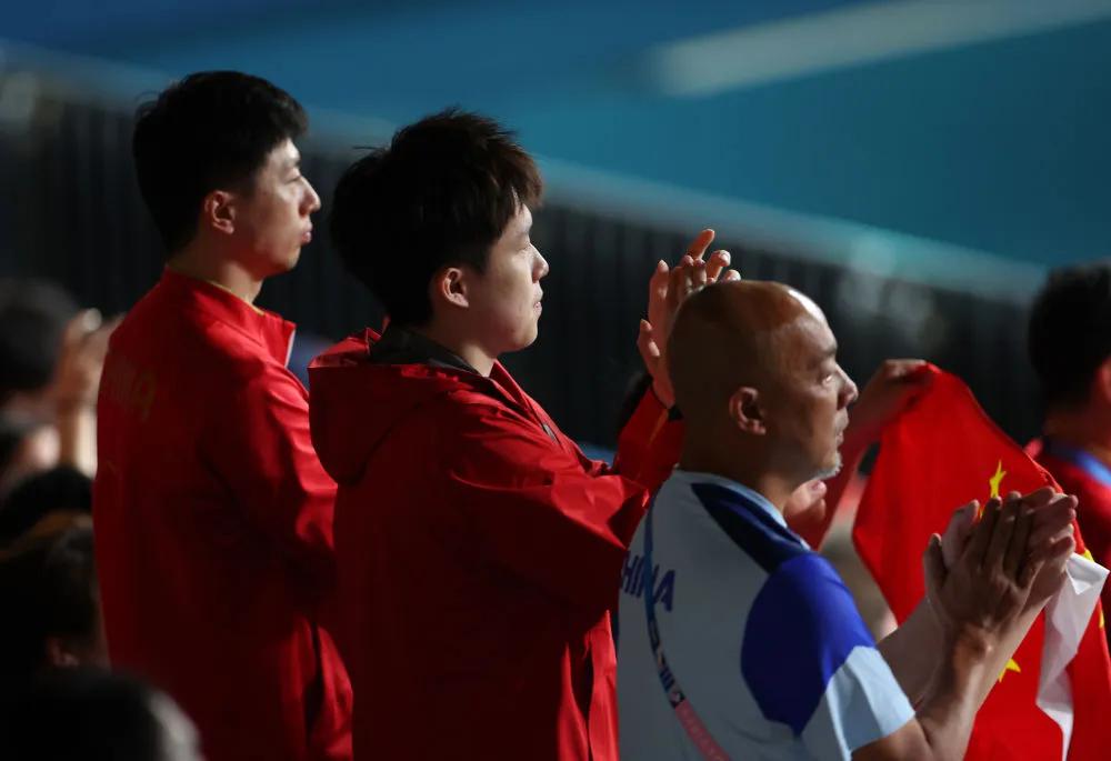 确实,本届奥运会,国乒男团捍卫了荣耀。就在马龙、樊振东、王楚钦走下领奖台、即将离场时,中国乒协主席刘国梁悄悄出现,给了每个人最大的拥抱。