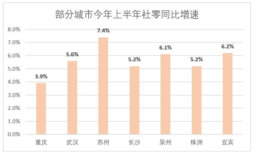 与此同时,以重庆、武汉、苏州为代表的新一线城市,还有更为下沉的城市,消费活力明显,跑赢了全国增速。