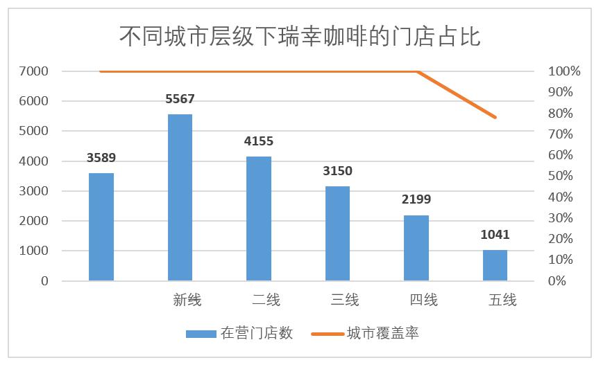 据极海品牌监测,瑞幸在过去一年里,基本完成了对全国地级市的全覆盖,实现了四线以上地级市的 100% 覆盖,以及五线城市(含省直辖县)78% 的覆盖率,整体城市覆盖率达 90%。
