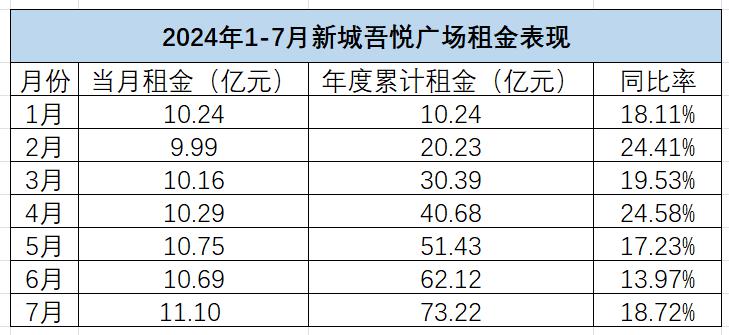 租金收入除了 2 月,其他 6 个月都超过 10 亿元大关,上半年商业运营总收入达到62.12 亿元(即含税租金收入),远高于去年同期的 52.01 亿元,今年总收入有望达到 125 亿元的目标。