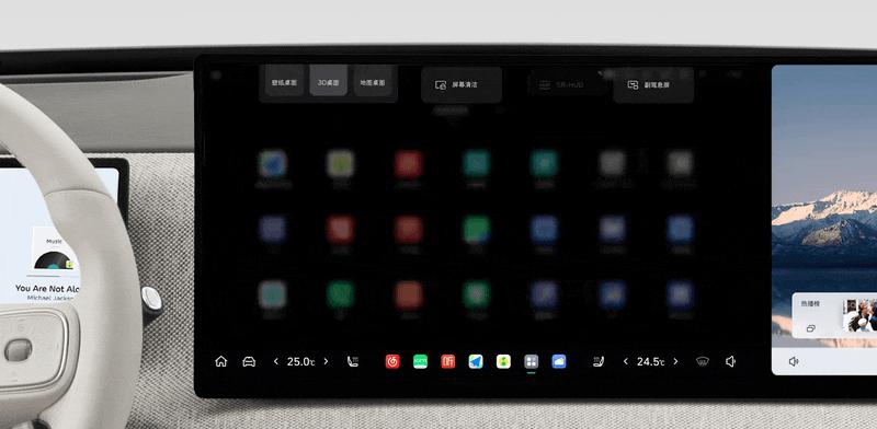 官方表示,这两块屏幕的边框仅有 7mm,厚度只有 9.5mm,是行业最薄的 LCD 屏幕。另一方面,和原先细长的屏幕相比,显示面积更大,离驾驶员更近的 16:9 的屏幕显然更适合车控使用,在高通骁龙 8295 的加持下,内置的 Coffee OS 3,操作也要更加流畅。