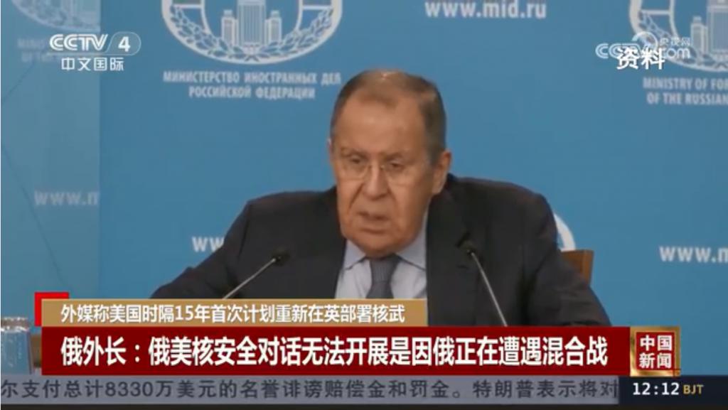 俄卫星通讯社称,此前,俄罗斯外长拉夫罗夫表示,俄美核安全对话无法开展,是因为俄罗斯正在遭遇一场混合战争,在此情况下,不仅不具备与美国达成关于战略稳定的新协议的条件,总体上也不具备开展任何相关对话的条件。