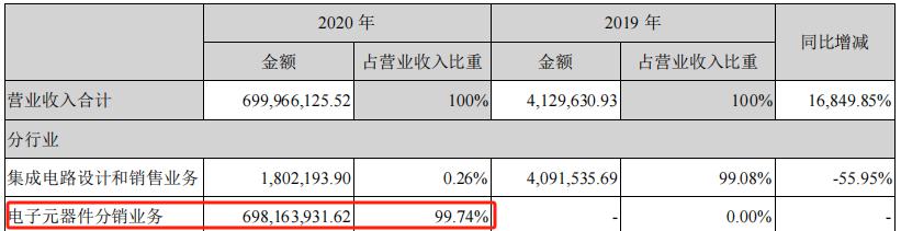 2020 年报显示,电子元器件分销贡献了 99.74% 的营收。从业绩占比来看,盈方微能够恢复上市,华信科和 WORLD STYLE 是绝对功臣。