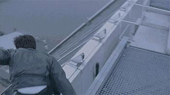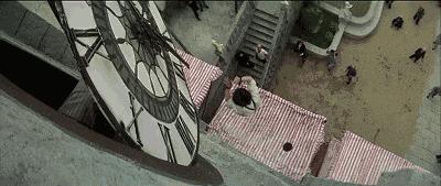 成龙拍《A 计划》的时候也是从钟楼直接跳,且那个年代保护措施非常简陋,跳了两次,导致胫骨骨折,鼻梁摔断。