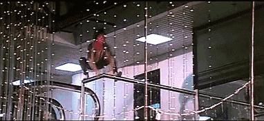 从 21 楼的大厦外速降,没有吊威亚,没有地面保护,被称为影史上的最危险镜头,导致当时保险公司都没人敢接成龙的保险。