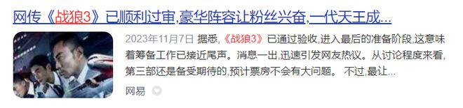 也带动了新的武打动作片潮流,战狼成了新的动作片风向标,隔三岔五就要传出要拍第三部的消息。