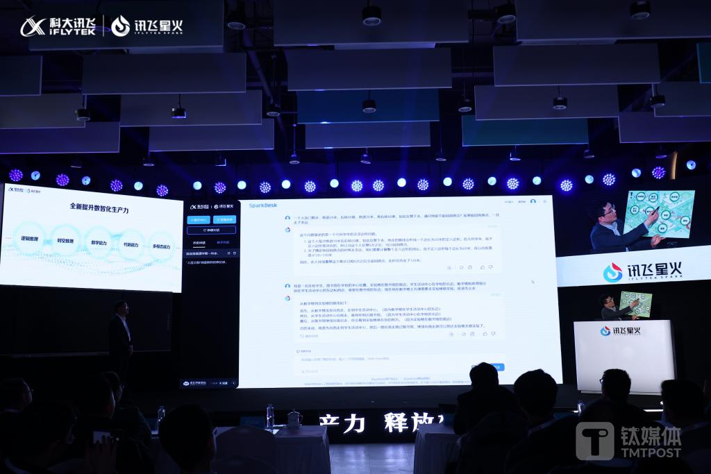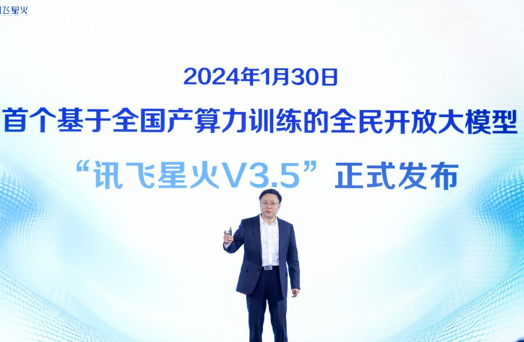 钛媒体 App 获悉,2024 年 1 月 30 日下午,人工智能(AI)上市公司科大讯飞(SHE: 002230)董事长刘庆峰正式发布首个基于全国产算力训练的全民开放大模型——讯飞星火认知大模型 V3.5(以下简称 " 讯飞星火 V3.5")版本。