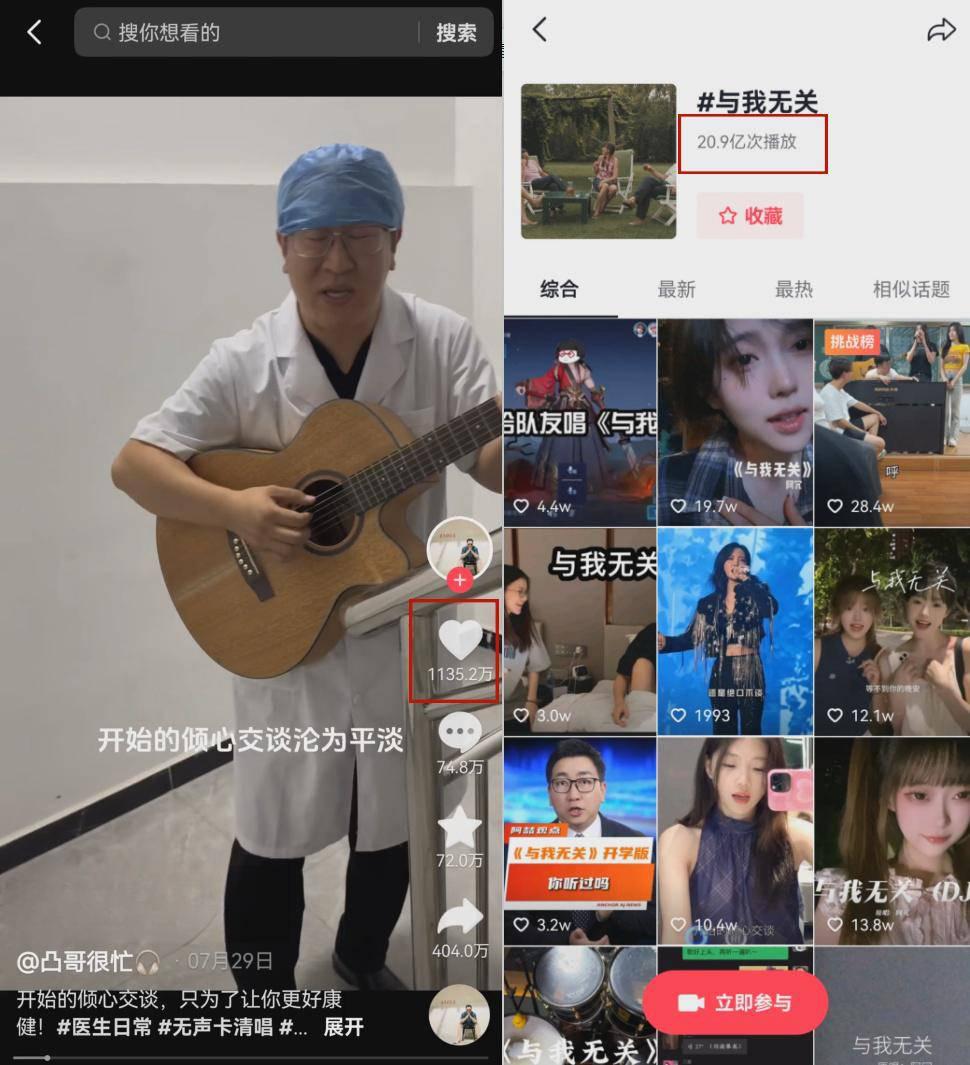 直到今年 8 月,这首歌曲被重新发掘,并掀起了全网的翻唱热潮。其中,抖音上医生 @凸哥很忙 在楼道里的翻唱收获了超千万的点赞量,相关话题的播放量也突破了 20 亿次。