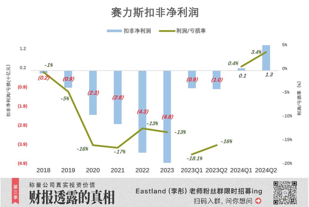 2017 年,赛力斯销量、毛利润率分别超过 40 万辆和 20%,随后连续 6 年亏损(扣非)。