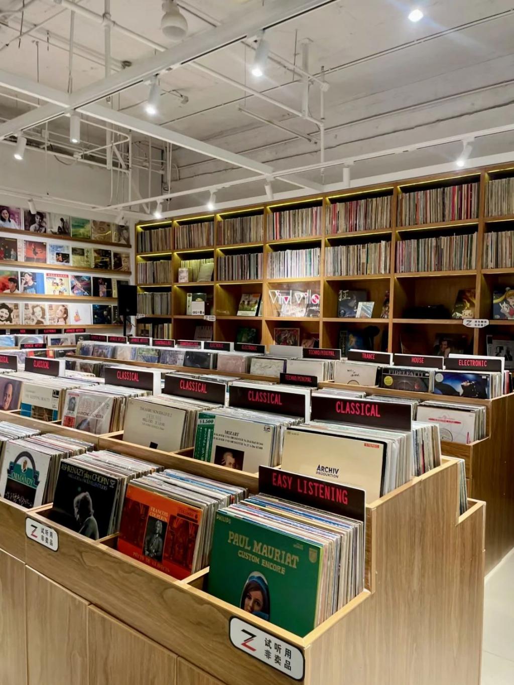当然,也正是因为在上海这座繁华与复古交织的都市里,年轻人正在以一种独特而时髦的方式沉浸于音乐之海,才会让音乐的土壤变得更加肥沃。工作日的间隙、周末的午后,年轻的面孔穿梭于一家家藏匿于街角的独立唱片店。走进这些充满复古气息的店铺,仿佛穿越时空,回到了那个唱片机轰鸣的年代。店内,一排排精心分类的唱片架上,从经典摇滚到独立民谣,从爵士蓝调到电子实验,应有尽有。年轻人们或低头细寻,指尖滑过每一张封面的边缘;或驻足于试听区,戴上耳机,让音符跳跃在耳畔。在这里,每一次选择都是一次与未知音乐的邂逅。