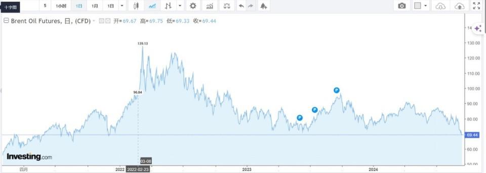一、周二基准布伦特原油价格跌破每桶 70 美元,为 2021 年 12 月 1 日以来的最低水平。