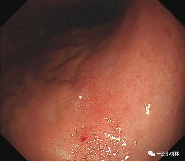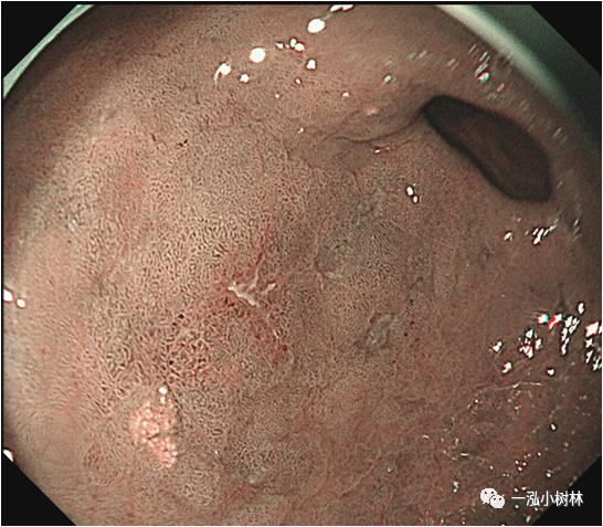 图4a 白光内镜:胃体下部高分化腺癌(Tub1)