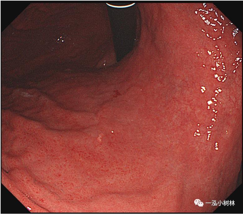 图3 白光内镜:胃体下部炎症。