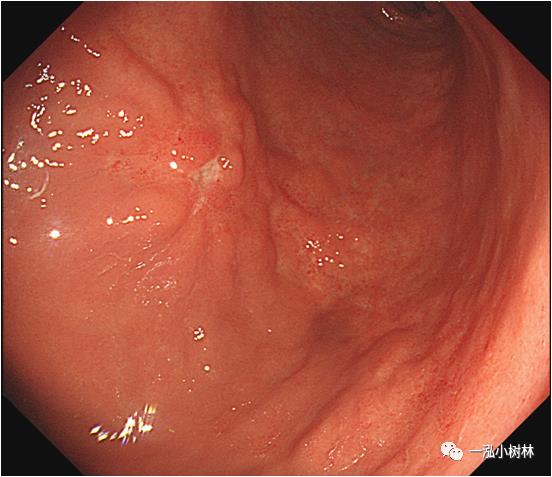 图10a 白光内镜:胃窦前壁高分化腺癌(Tub1)