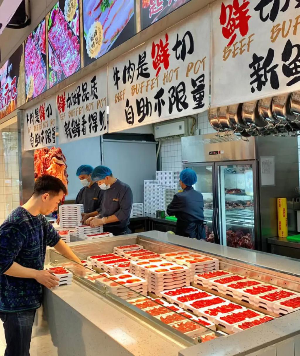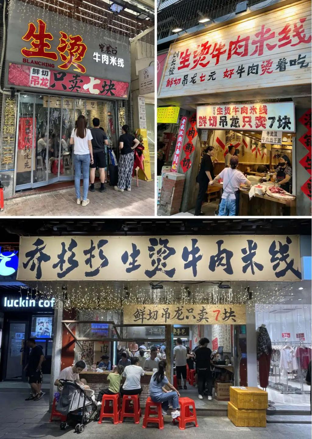 不只是生烫牛肉米线,有一大批品类借着今年牛肉降价的风潮,乘势而起。鲜切牛肉自助、酸汤牛肉火锅、渣渣牛肉火锅,不一而足。