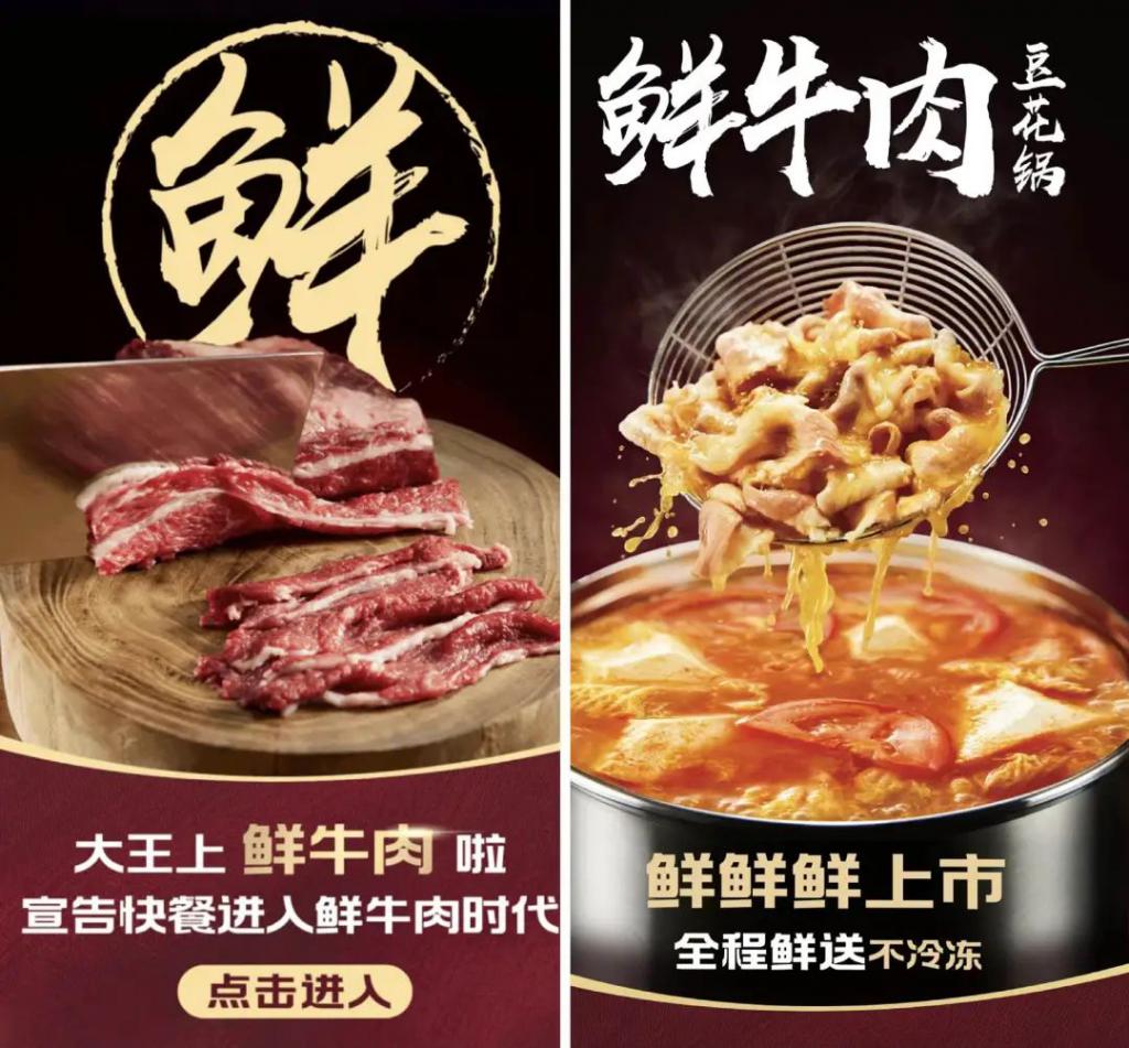前不久,永和大王官方公众号发布 "10 万张牛肉锅券,大王进军鲜牛肉界!" 的信息,宣布品牌最新上线两款鲜牛肉锅,并打出了 " 全程鲜送不冷冻 "、" 小锅热出 " 的卖点。