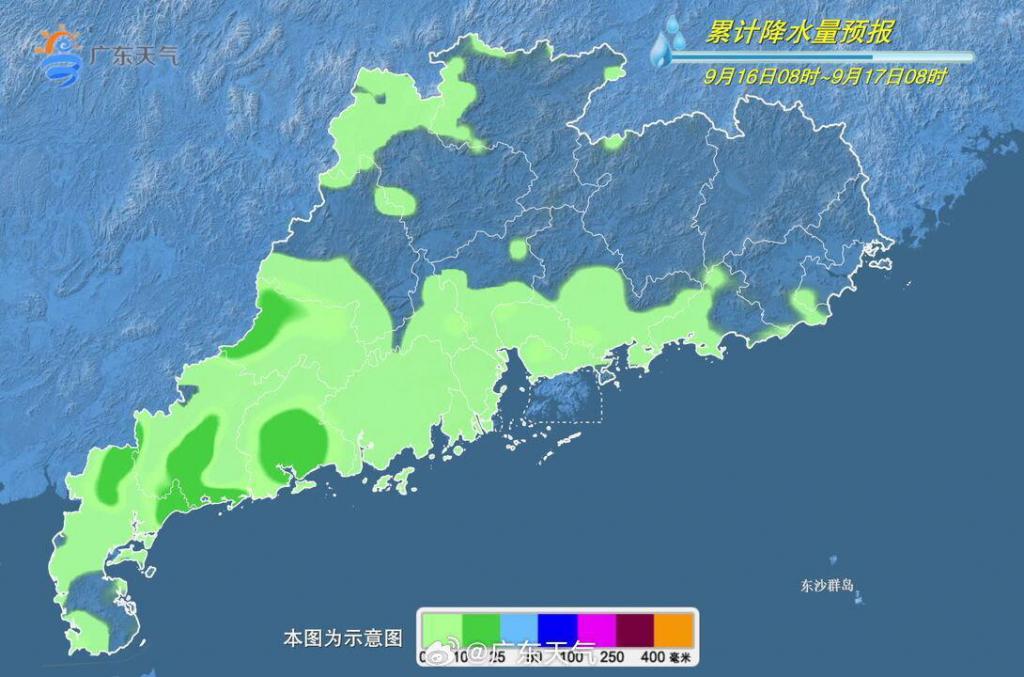 ◆预计 16-18 日,广东多云为主,中南部市县有分散(雷)阵雨;中秋夜大部市县可见月光,但粤西市县云量多,伴有分散(雷)阵雨;17-18 日,广东大部市县有 35~37 ℃的高温天气。