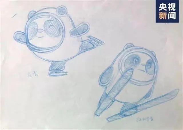 冰墩墩设计草图 图片来源:央视新闻视频截图