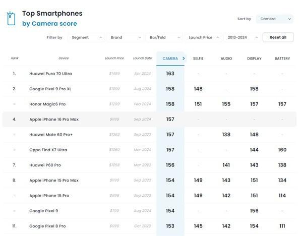 随着 iPhone 16 系列的全面发售,智能手机摄影领域再次迎来了一场视觉盛宴。近日,权威影像评测机构 DXO 公布了 iPhone 16 Pro Max 的影像成绩,该机凭借卓越的拍摄能力一举获得 157 分的高分,不仅位列全球第四,更与华为 Mate 60 Pro+、OPPO Find X7 Ultra 等顶尖机型并驾齐驱,共同展现了当前智能手机摄影的巅峰水平。