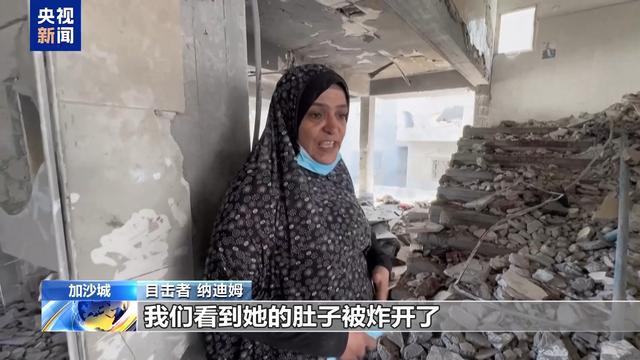 目击者 纳迪姆:在这里,一名妇女死亡,楼梯上都是她的血。我们发现她的腿断了,她丈夫过来告诉我们,她怀孕了。我们看到她的肚子被炸开了,小小的胎儿掉在了楼梯上,一个 4 个月大的胎儿。胎儿做错了什么?胎儿和内塔尼亚胡或拜登发生冲突了吗?还是跟以色列人,跟美国人打过仗?