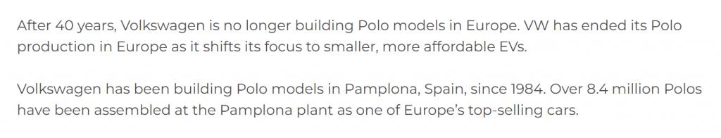 最近,脖子哥在找选题的时候,看到这么一条新闻:大众宣布在欧洲停产 Polo 。