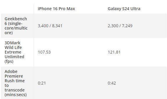 在之前的性能测试中,三星 S24 Ultra 与 iPhone 15 Pro Max 性能相当,难分高下。然而,随着 iPhone 16 Pro Max 搭载的全新 3nm 制程 A18 Pro 芯片的亮相,它在此次对比中脱颖而出,成为明显赢家。Geekbench 6 的测试结果显示,iPhone 16 Pro Max 的单核与多核分数分别跃升至 3400 和 8341,相较于 iPhone 15 Pro Max 有显著进步。