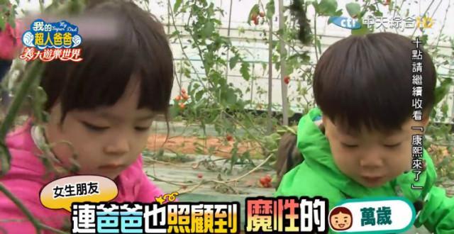 弟弟万岁典型的忙内性格,性格偏调皮,可是该懂事的时候又十分懂事,哦,还是个少女心收割机,有一次,爸爸带他们去番茄园摘番茄,有两个小女孩主动帮万岁摘呢