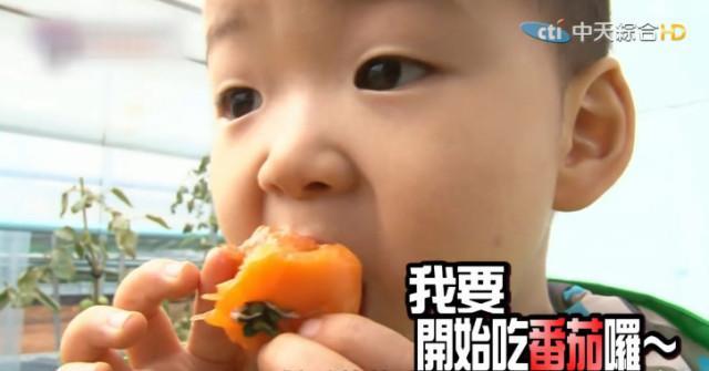 人小鬼大,怕番茄汁水滴到衣服上,还会这么吃