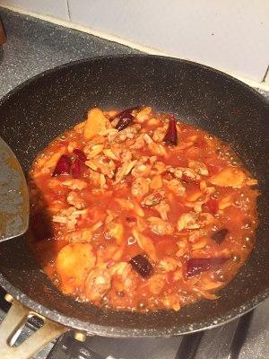 9、放适量郫县豆瓣酱炒出红油;