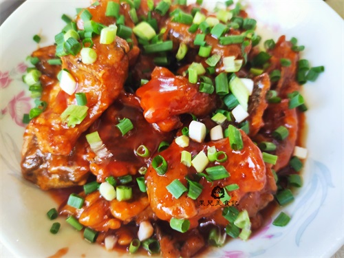 最后再撒上葱花,使其颜色看起来更有食欲,自从我们家开始用这种方法做糖醋鱼后,就经常这样做,每次可以按量来做,也不用像太大的鱼有时候做出来一条吃不完留着第二顿就不好吃了。