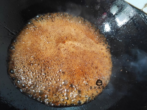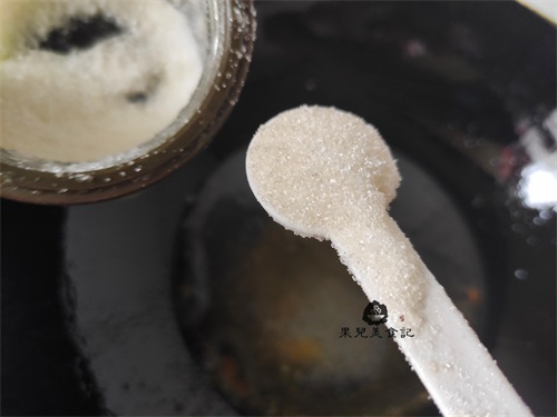 五、倒出锅中多余的油,加一碗清水,再加入适量白糖,如果家里有番茄酱可以加一些番茄酱味道会更鲜;