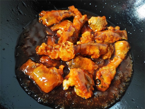 十、糖醋汤汁粘稠后,倒入炸好的小鱼块翻炒均匀使其裹上糖醋汁,出锅即可;