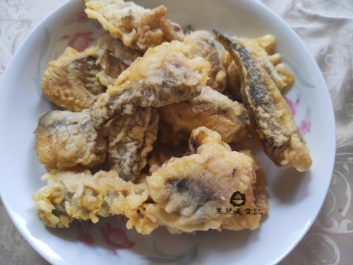 四、炸出来的小鱼块,我们需要通过二次复炸使其更加香酥,炸好的鱼捞出装盘备用;