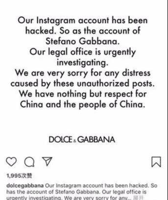 后来,DG官员并没有对这一事件真诚道歉,而是通过一个简单而虚假的声明澄清了这一事件,称账号被盗,对话者不是该品牌的负责人。