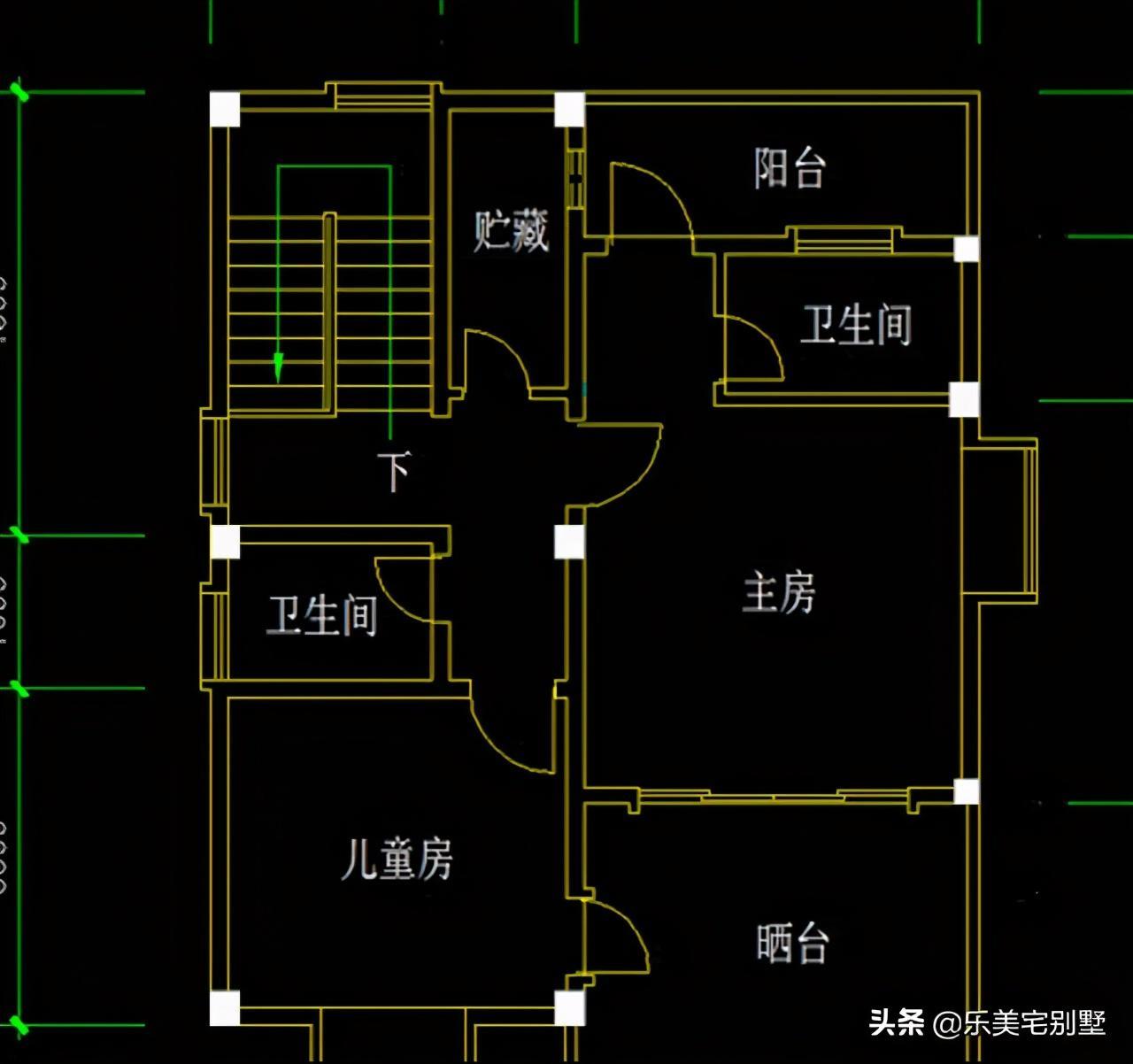 二 层:主卧(附卫生间、阳台)、儿童房(附晒台、卫生间)、贮藏室