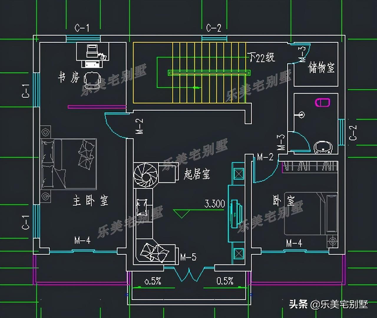 二 层:起居室、主卧室、卧室、书房、储物室、卫生间