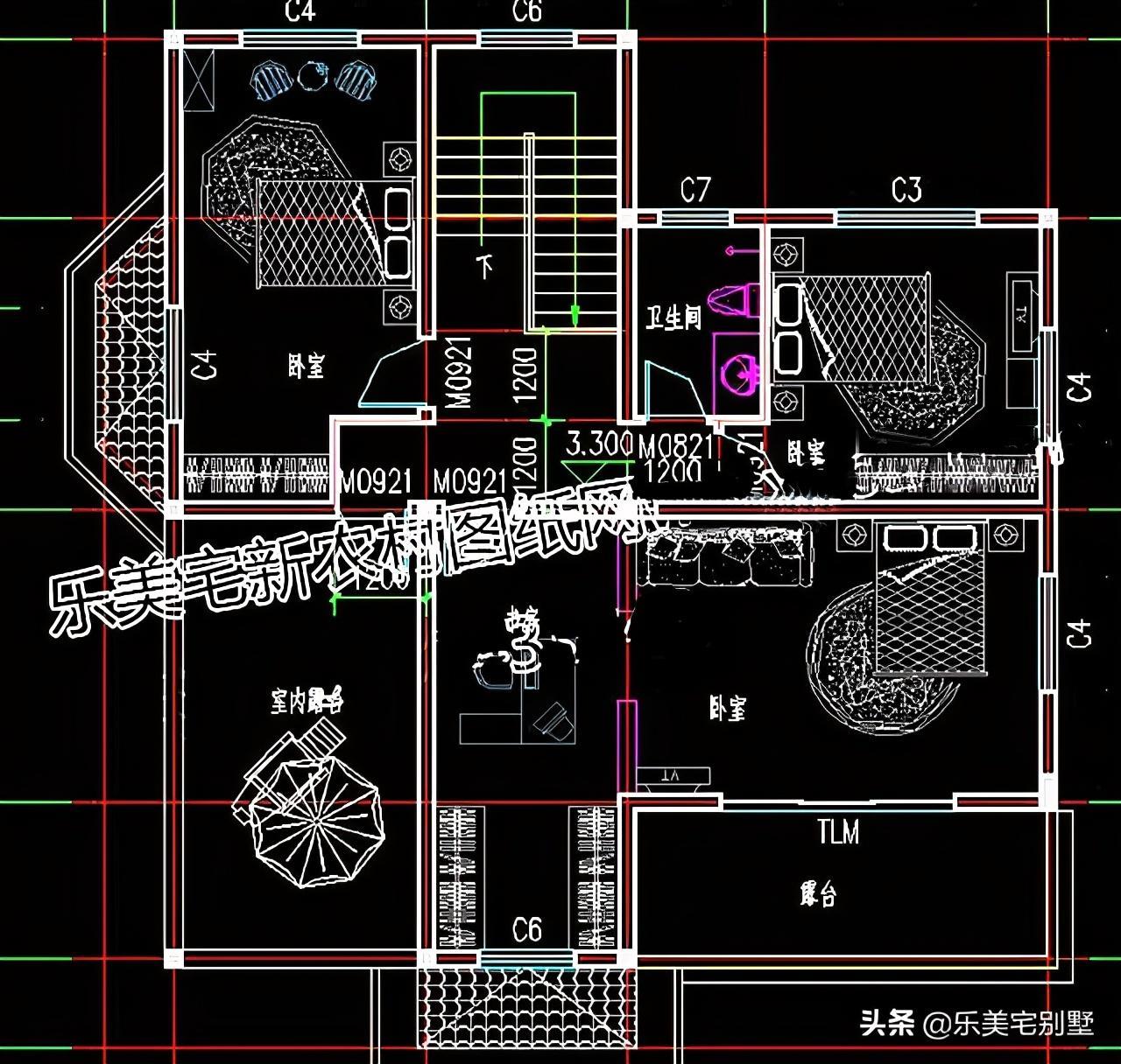 这款占地100平米左右,小阳台以及落地窗是盖栋别墅的亮点,室内采光和通风良好。一楼入户为玄关,不仅具有装饰居室的作用,而且起到遮挡作用,避免外人对室内一览无余。玄关右侧是大客厅,空间互通,视野更加的开阔,招待客人也会显得大气些。总共有6间卧室,三代同堂没问题。