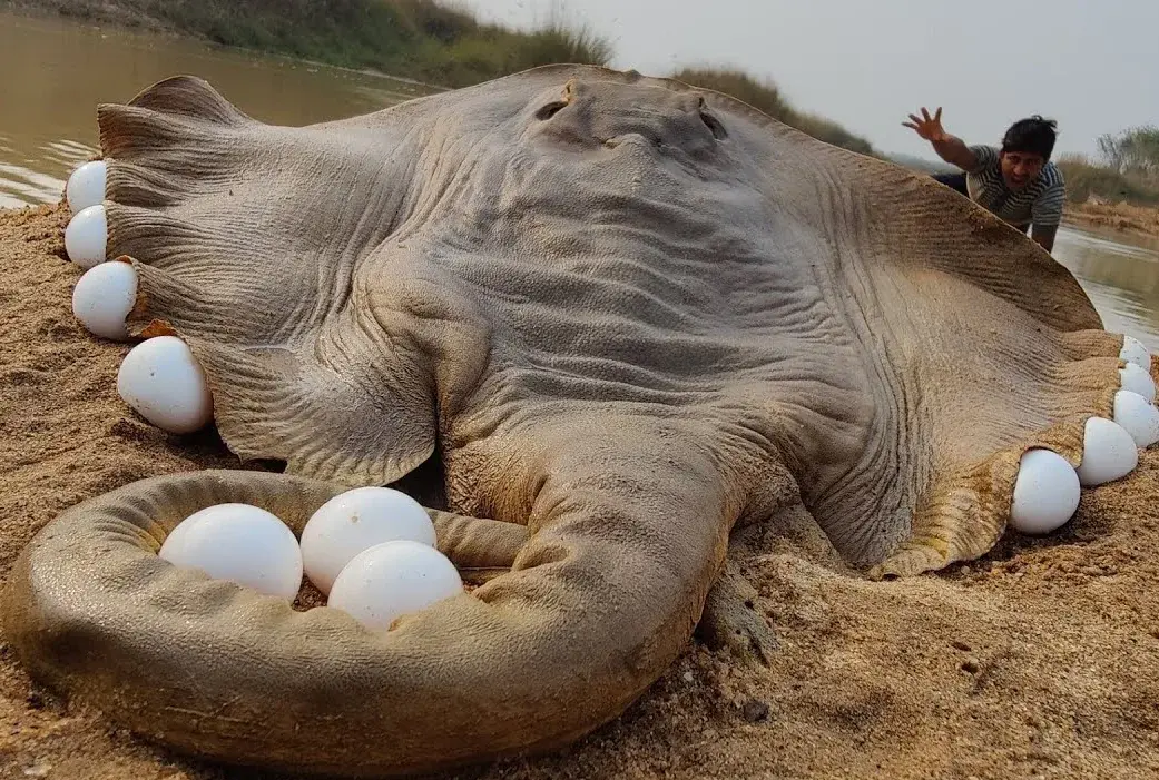 这像极了大象拿着它最喜欢的鸡蛋。
