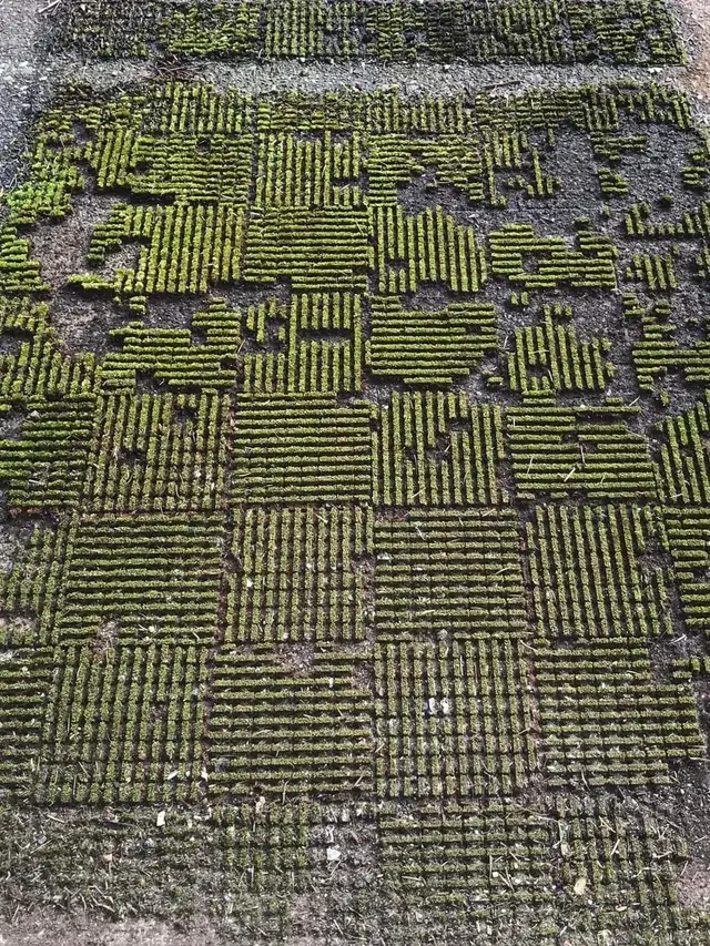 这像极了去除车库垫后留下的复杂的苔藓图案。