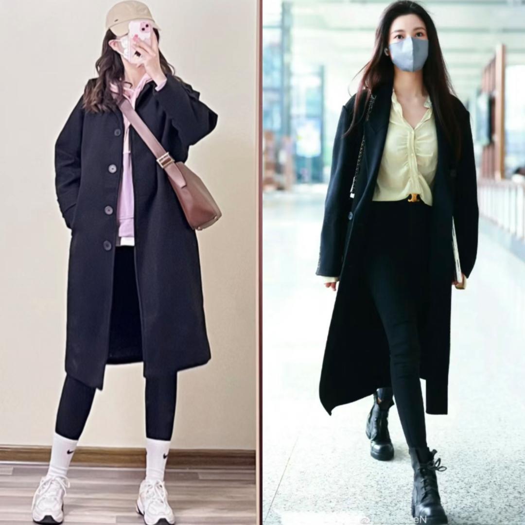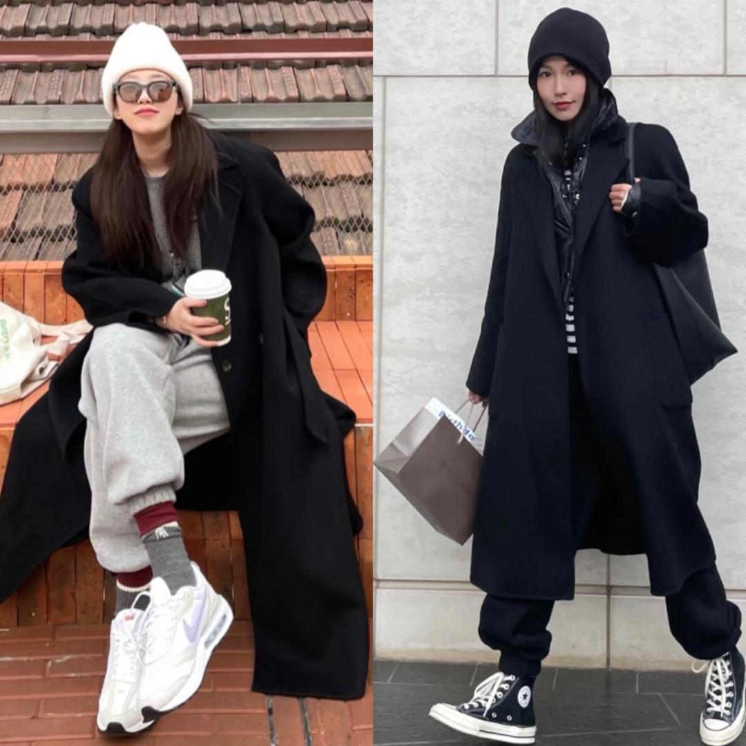 八、黑色大衣+运动裤