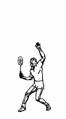 技术要领:头顶后场高球是将飞往左后场区的球用正手握拍击球的正面,将球击到对方后场区的击球技术。准备动作与正手后场高球基本相同,只是在引拍时身体略朝左后倾斜;击球时将拍子绕过头顶,从头顶左肩上方击球。