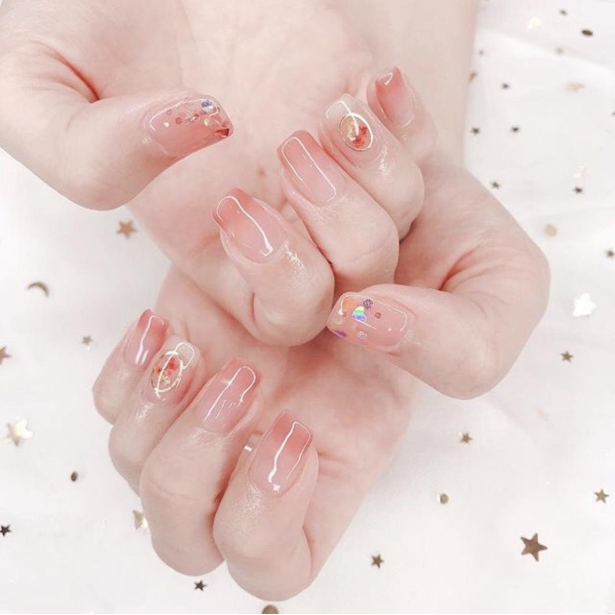 在粉色的渐变甲上,加上精致的钻石装饰,会大大增加美甲的精致感,这种粉嫩又闪亮的气质,真的非常漂亮哦~
