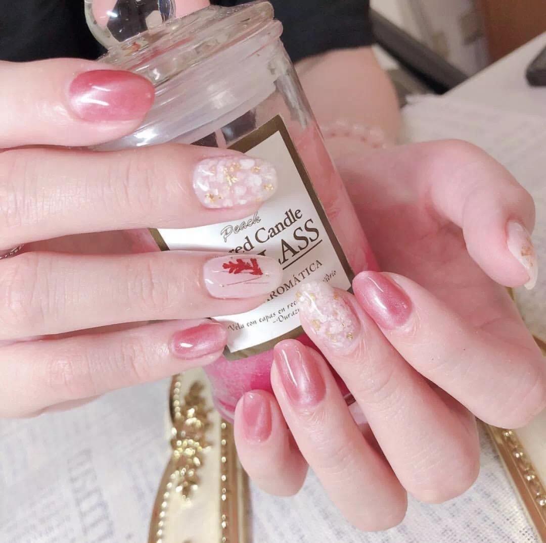 粉色的猫眼甲,也是很多女生们喜欢的款式,尤其是粉色的金光猫眼,粉色和金色的发光微粒,搭配起来格外好看,让指尖显得很有灵气,搭配上裸透质感的金箔甲,会更有亮点哦!