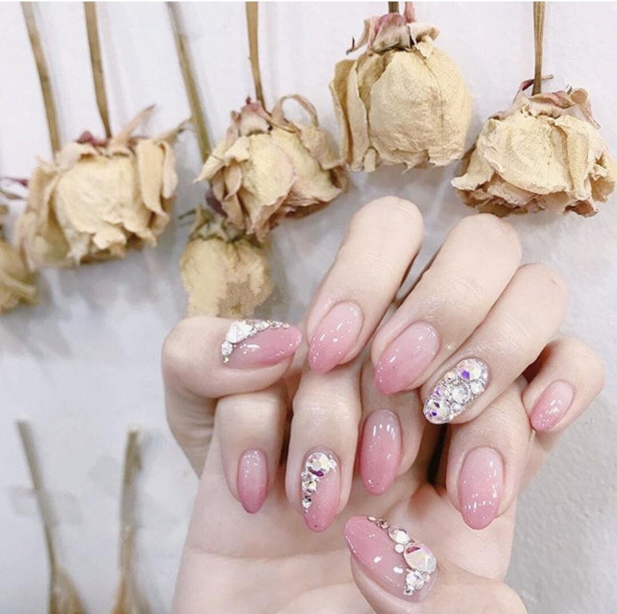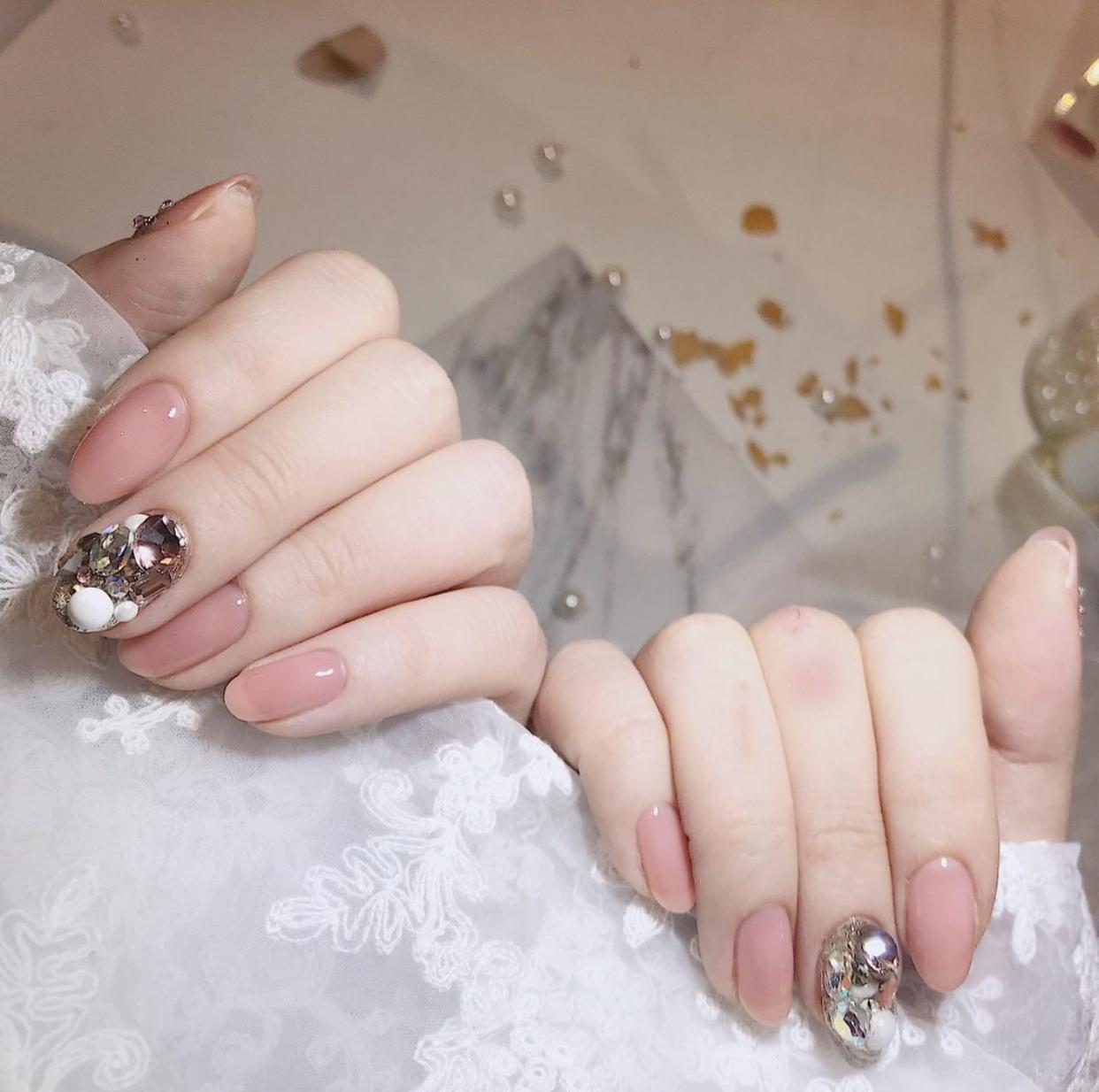 用裸粉色的纯色美甲,搭配精致的整甲钻石美甲,也是非常漂亮的款式,粉色自带了优雅高级的气质,搭配上精致的钻石美甲,简约又时髦,这种轻奢风非常迷人。